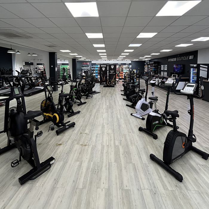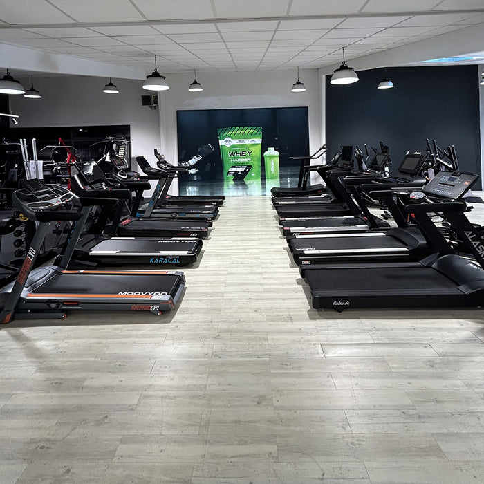 Explorez notre showroom pour essayer nos tapis de course, vélos elliptiques, rameurs, bancs de musculation, cages et vélos d’appartement...