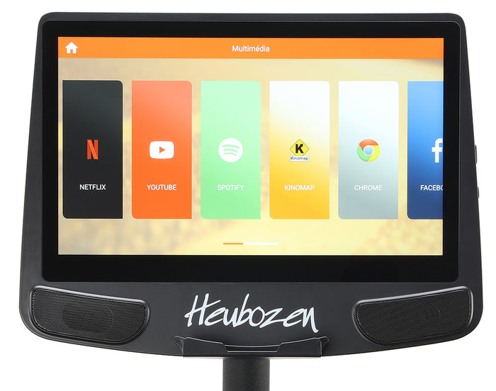 Découvrez une expérience d'entraînement immersive et interactive avec notre écran tactile de 15,6 pouces (39 cm), connecté et inclinable. Profitez d’un confort optimal et d’un accès direct à vos applications préférées : Netflix, YouTube, Spotify, Kinomap, Facebook, Twitter, Instagram, Google Chrome et Amazon Prime Video.