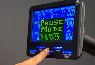 - Console LCD deux couleurs 146 x 71,5 mm, éclairage bleu des touches, ajustable en hauteur afin de s'adapter au mieux à l'utilisateur pour une bonne visibilité lors de l'entraînement !