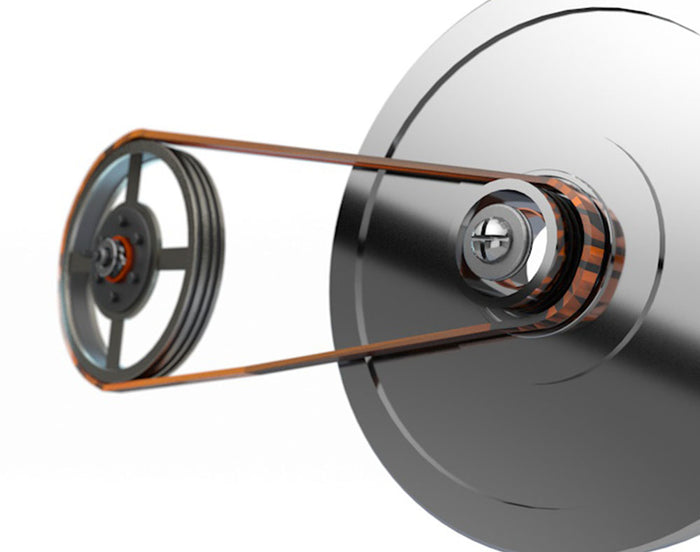 - Transmission par courroie (8 stries) permettant de limiter la perte de puissance au niveau de la résistance.