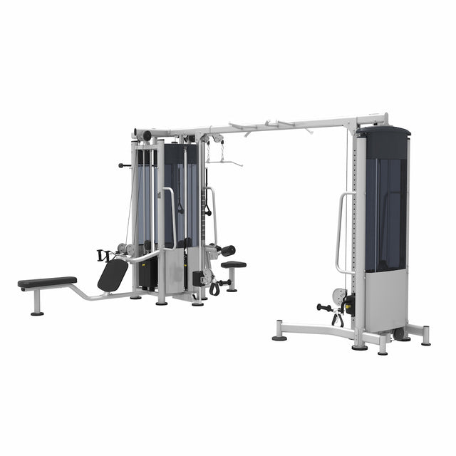 Une multitude de possibilités d'exercices d'entraînements complets pour travailler tous les groupes musculaires, tour 4 stations à quadruple charge automatique de 134 kg chacune, crossover et barres de traction.