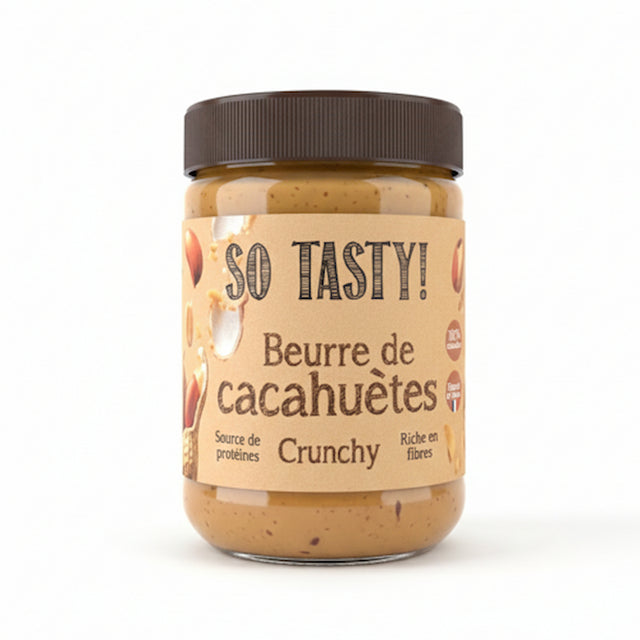 Le beurre de cacahuètes crunchy SO TASTY est une délicieuse purée d’arachides grillées, dépelliculées et dégermées, simplement broyées pour préserver toutes leurs qualités nutritionnelles.